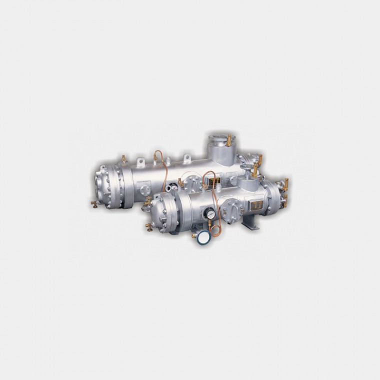 發電廠的表面冷凝器通常是直管式熱交換器。由于流體可以在同一側進入和排出,因此通常采用兩次和四次設計。這使得結構要簡單得多。通常有擋板引導流體通過殼側,因此流體不會在殼側短切,導致無效的低流量。這些通常附著在管束上,而不是殼上,以便管束仍然可以移除以維護。
